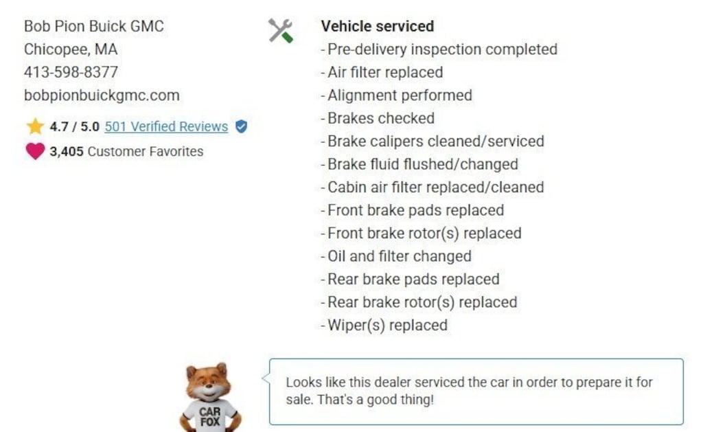For over 40 years, thousands of our customers have trusted us in guiding them with their vehicle purchase and have been thoroughly satisfied with how we've assisted them in their car buying experience! Here are just a few of the reasons they trust and choose Bob Pion Buick GMC: We're here to help you buy a car, not to sell you one. Our staff first takes the time to understand your vehicle needs and wants, then works with you to find the right vehicle Over 100 years of automotive repair experience makes up our service department that will help you keep your vehicle on the road for years to come Once we've helped you find the right vehicle, we make getting the best deal quick and easy. You won't have to spend your day going back and forth with the manager a dozen times to get our best price. Awards: