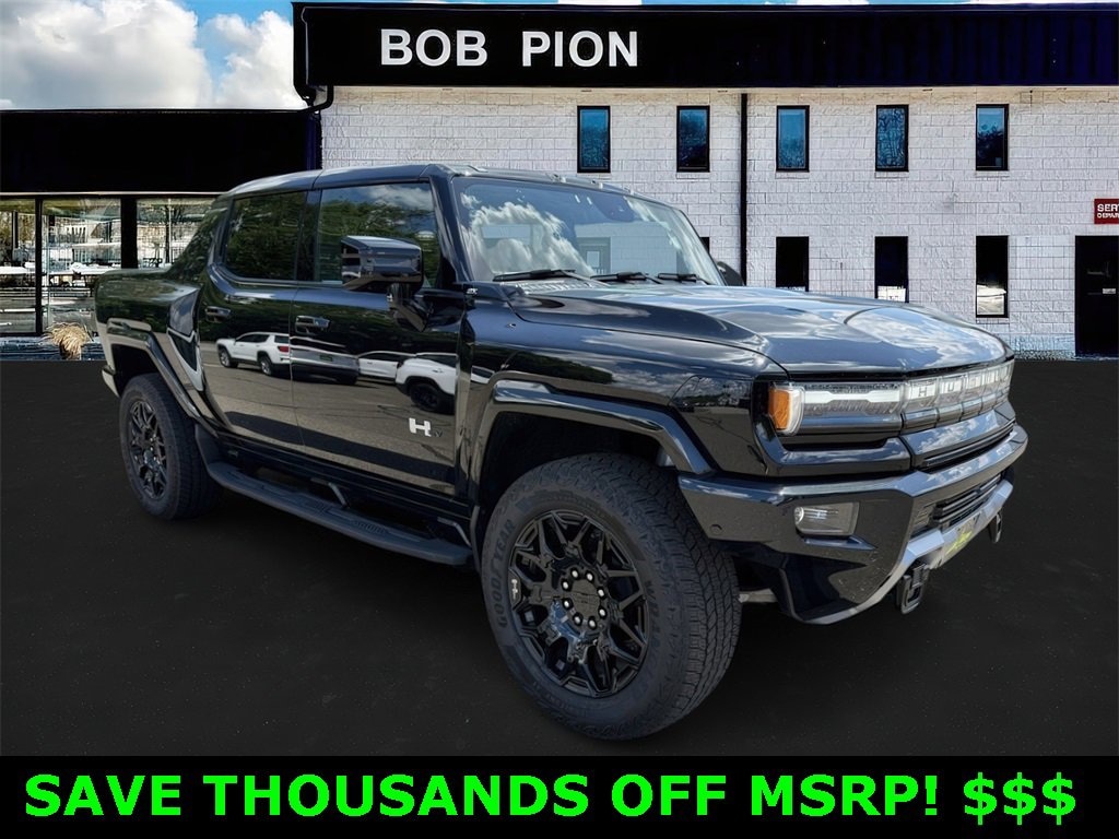 Bob Pion Buick GMC is proud to present you with another True Market Priced Vehicle. This 2025 GMC Hummer EV Pickup 2X is loaded with the following Factory Options: Preferred Equipment Group 1SC, Hummer EV Pickup 2X, 4D Crew Cab, Electric Motor, 1-Speed Automatic, 4WD, Void Black, Lunar Horizon (Jet Black/Light Grey) Leather, and Navigation System Preferred Equipment Group 1SC, Hummer EV Pickup 2X, 4D Crew Cab, Electric Motor, 1-Speed Automatic, 4WD, Void Black, Lunar Horizon (Jet Black/Light Grey) Leather, Navigation System, 12-Way Power Driver Seat Adjuster, 12-Way Power Passenger Seat Adjuster, 13.26 Final Drive Ratio, 14 Speakers, 4-Wheel Disc Brakes, ABS brakes, Adaptive suspension, Air Conditioning, Alloy wheels, AM/FM radio: SiriusXM with 360L, Apple CarPlay/Android Auto, Auto High-beam Headlights, Auto-dimming door mirrors, Auto-dimming Rear-View mirror, Automatic temperature control, Brake assist, Compass, Delay-off headlights, Driver door bin, Driver vanity mirror, Dual front impact airbags, Dual front side impact airbags, Electronic Stability Control, Four wheel independent suspension, Front & Rear Air Ride Adaptive Suspension, Front anti-roll bar, Front Bucket Seats, Front dual zone A/C, Front License Plate Kit, Front reading lights, Garage door transmitter, Heated door mirrors, Heated Driver & Front Passenger Seats, Heated front seats, Heated rear seats, Heated steering wheel, Illuminated entry, Low tire pressure warning, Memory seat, Occupant sensing airbag, Outside temperature display, Overhead console, Panic alarm, Passenger door bin, Passenger vanity mirror, Portable Dual Level Charge Cord, Power door mirrors, Power driver seat, Power passenger seat, Power steering, Power windows, Premium Leather-Alternative Seating Surfaces, Radio data system, Rain sensing wipers, Rear air conditioning, Rear reading lights, Rear window defroster, Remote keyless entry, Security system, Speed control, Speed-sensing steering, Split folding rear seat, Steering wheel memory, Steering wheel mounted audio controls, Telescoping steering wheel, Tilt steering wheel, Traction control, Trip computer, Variably intermittent wipers, Ventilated Driver & Front Passenger Seats, Ventilated front seats, Wheels: 22 x 9.5 Gloss Black Painted Aluminum, and Wireless Phone Projection!!