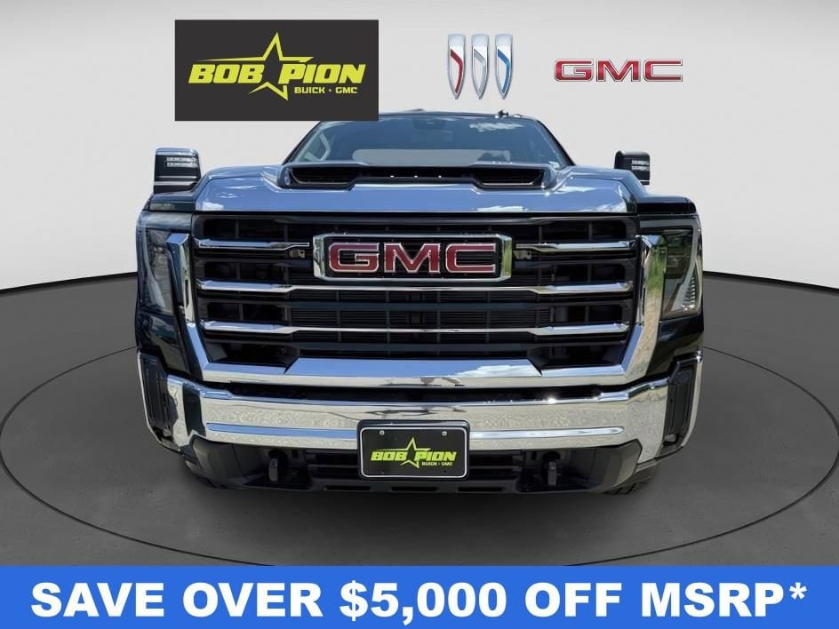 Bob Pion Buick GMC is proud to present you with another True Market Priced Vehicle. This 2025 GMC Sierra 2500HD SLE is loaded with the following Factory Options: Preferred Equipment Group 3SA (120-Volt Bed Mounted Power Outlet, 120-Volt Instrument Panel Power Outlet, 2 Charge/Data USB Ports, 2-Speed Electronic Shift Transfer Case, 4-Way Manual Driver Seat Adjuster, Chrome Surround Grille w/Chrome Insert Bars, Deep-Tinted Glass, Keyless Open & Start, OnStar Services Capable, Push Button Start, SiriusXM w/360L Trial Subscription, Steering Wheel Audio Controls, and Wireless Phone Projection), Preferred Package (Adaptive Cruise Control, Hitch Guidance w/Hitch View, In-Vehicle Trailering System App, and LED Cargo Area Lighting), Remote Start Package (Electric Rear-Window Defogger, Remote Vehicle Starter System, and Unauthorized Entry Theft-Deterrent System), SLE Convenience Package (10-Way Power Driver Seat Adjuster w/Lumbar, A/C w/Dual-Zone Automatic Climate Control, LED Fog Lamps, LED Smoked Amber Roof Marker Lamps, and Manual Tilt-Wheel/Telescoping Steering Column), SLE Heated Package (Heated Driver & Front Outboard Passenger Seats and Heated Steering Wheel), Snow Plow Prep/Camper Package (220-Amp Alternator), Suspension Package, Sierra 2500HD SLE, 2D Standard Cab, 6.6L V8, 10-Speed Automatic, 4WD, Onyx Black, and Jet Black Cloth Preferred Equipment Group 3SA (120-Volt Bed Mounted Power Outlet, 120-Volt Instrument Panel Power Outlet, 2 Charge/Data USB Ports, 2-Speed Electronic Shift Transfer Case, 4-Way Manual Driver Seat Adjuster, Chrome Surround Grille w/Chrome Insert Bars, Deep-Tinted Glass, Keyless Open & Start, OnStar Services Capable, Push Button Start, SiriusXM w/360L Trial Subscription, Steering Wheel Audio Controls, and Wireless Phone Projection), Preferred Package (Adaptive Cruise Control, Hitch Guidance w/Hitch View, In-Vehicle Trailering System App, and LED Cargo Area Lighting), Remote Start Package (Electric Rear-Window Defogger, Remote Vehicle Starter System, and Unauthorized Entry Theft-Deterrent System), SLE Convenience Package (10-Way Power Driver Seat Adjuster w/Lumbar, A/C w/Dual-Zone Automatic Climate Control, LED Fog Lamps, LED Smoked Amber Roof Marker Lamps, and Manual Tilt-Wheel/Telescoping Steering Column), SLE Heated Package (Heated Driver & Front Outboard Passenger Seats and Heated Steering Wheel), Snow Plow Prep/Camper Package (220-Amp Alternator), Suspension Package, Sierra 2500HD SLE, 2D Standard Cab, 6.6L V8, 10-Speed Automatic, 4WD, Onyx Black, Jet Black Cloth, 17 Machined Aluminum Wheels, 18 Machined Aluminum Wheels, 2 Speakers, 2-Speaker Audio System Feature, 2-Speed Active Transfer Case, 3.73 Rear Axle Ratio, 4-Way Manual Passenger Seat Adjuster, 4-Wheel Disc Brakes, ABS brakes, Air Conditioning, Alloy wheels, AM/FM radio: SiriusXM with 360L, Apple CarPlay/Android Auto, Auto High-beam Headlights, Auto-Dimming Inside Rear-View Mirror, Automatic Emergency Braking, Brake assist, Buckle to Drive, Bumpers: chrome, Cloth Seat Trim, Compass, Delay-off headlights, Driver door bin, Driver vanity mirror, Dual front impact airbags, Dual front side impact airbags, Electronic Stability Control, Emergency communication system: OnStar, Following Distance Indicator, Forward Collision Alert, Front 40/20/40 Split-Bench Seats, Front anti-roll bar, Front Center Armrest w/Storage, Front License Plate Kit, Front Pedestrian Braking, Front reading lights, Front wheel independent suspension, Fully automatic headlights, GMC MultiPro Tailgate, Heated door mirrors, Heavy-Duty 80 Amp Battery, Illuminated entry, IntelliBeam Automatic High Beam On/Off, Lane