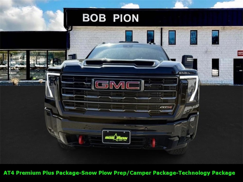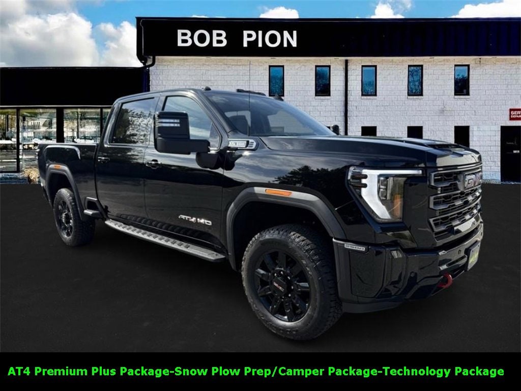 Bob Pion Buick GMC is proud to present you with another True Market Priced Vehicle. This 2025 GMC Sierra 2500HD AT4 is loaded with the following Factory Options: AT4 Preferred Package (LED Smoked Amber Roof Marker Lamps, Power Sliding Rear Window w/Defogger, and Universal Home Remote), AT4 Premium Plus Package (Off-Road High Clearance Step (LPO) and Power Sunroof), Preferred Equipment Group 4SB (120-Volt Bed Mounted Power Outlet, 120-Volt Instrument Panel Power Outlet, 2 Charge-Only Rear USB Ports, 2 Charge/Data USB Ports Inside Center Console, 2 USB Ports, 2-Speed Active Transfer Case, Bed View Camera w/2 Trailer Camera Provisions, Bose Premium 7-Speaker Sound System, Deep-Tinted Glass, Electric Rear-Window Defogger, Floor-Mounted Center Console, Front Prem Floor Liners w/Removable Carpet Insert, Front Rain-Sensing Wipers, w/Express Up/Down, Push Button Start, Rear Cross Traffic Alert, Rear Prem Floor Liners w/Removable Carpet Insert, Rear Wheelhouse Liners, Remote Vehicle Starter System, Safety Alert Seat, SiriusXM w/360L Trial Subscription, Spray-On Pickup Bedliner w/GMC Logo, Steering Wheel Audio Controls, Trailer Cam Provisions & Trailer Viewing Software, Trailer Side Blind Zone Alert, Ultrasonic Front & Rear Park Assist, Unauthorized Entry Theft-Deterrent System, Ventilated Driver & Front Passenger Seats, Wireless Charging, and Wireless Phone Projection), Snow Plow Prep/Camper Package (220-Amp Alternator), Technology Package (Inside Rearview Auto-Dimming Rear Camera Mirror and Multicolor 15 Diagonal Head-Up Display), X31 Off-Road Package (Hill Descent Control), Sierra 2500HD AAT4, 4D Crew Cab, 6.6L V8, 10-Speed Automatic, 4WD, Onyx Black, and Jet Black With Kalahari Accents Leather AT4 Preferred Package (LED Smoked Amber Roof Marker Lamps, Power Sliding Rear Window w/Defogger, and Universal Home Remote), AT4 Premium Plus Package (Off-Road High Clearance Step (LPO) and Power Sunroof), Preferred Equipment Group 4SB (120-Volt Bed Mounted Power Outlet, 120-Volt Instrument Panel Power Outlet, 2 Charge-Only Rear USB Ports, 2 Charge/Data USB Ports Inside Center Console, 2 USB Ports, 2-Speed Active Transfer Case, Bed View Camera w/2 Trailer Camera Provisions, Bose Premium 7-Speaker Sound System, Deep-Tinted Glass, Electric Rear-Window Defogger, Floor-Mounted Center Console, Front Prem Floor Liners w/Removable Carpet Insert, Front Rain-Sensing Wipers, Gloss Black Header Grille & Grille Insert Bars, HD Surround Vision, Heated 2nd Row Outboard Seats, Heated Driver & Front Outboard Passenger Seats, Keyless Open & Start, LED Cargo Area Lighting, Manual Tilt-Wheel/Telescoping Steering Column, OnStar Services Capable, Power Front Passenger Windows w/Express Up/Down, Push Button Start, Rear Cross Traffic Alert, Rear Prem Floor Liners w/Removable Carpet Insert, Rear Wheelhouse Liners, Remote Vehicle Starter System, Safety Alert Seat, SiriusXM w/360L Trial Subscription, Spray-On Pickup Bedliner w/GMC Logo, Steering Wheel Audio Controls, Trailer Cam Provisions & Trailer Viewing Software, Trailer Side Blind Zone Alert, Ultrasonic Front & Rear Park Assist, Unauthorized Entry Theft-Deterrent System, Ventilated Driver & Front Passenger Seats, Wireless Charging, and Wireless Phone Projection), Snow Plow Prep/Camper Package (220-Amp Alternator), Technology Package (Inside Rearview Auto-Dimming Rear Camera Mirror and Multicolor 15 Diagonal Head-Up Display), X31 Off-Road Package (Hill Descent Control), Sierra 2500HD AAT4, 4D Crew Cab, 6.6L V8, 10-Speed Automatic, 4WD, Onyx Black, Jet Black With Kalahari Accents Leather, 10-Way Power Driver Seat Adjuster w/Lumbar, 10-Way Power Passenger Seat Adjuster w/Lumbar, 3.73 Rear Axle Ratio, 4-Wheel Disc Brakes, 7 S