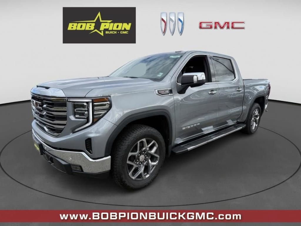 Sierra 1500 SLT, 4D Crew Cab, EcoTec3 6.2L V8, 10-Speed Automatic, 4WD, Sterling Metallic, Black Leather, 120-Volt Bed Mounted Power Outlet, 120-Volt Interior Power Outlet, 170 Amp Alternator, 2 Charge/Data USB Ports, 2 Charge/Data USB Ports Inside Center Console, 2 Type-C Charge-Only Rear USB Ports, 6-Speaker Audio System Feature, Adaptive Cruise Control, All-Weather Floor Liner (LPO), Auto-Locking Rear Differential, Auxiliary External Transmission Oil Cooler, Chrome Header & Chrome Grille Insert Bars, Chrome Wheel To Wheel Assist Steps, Color-Keyed Carpeting Floor Covering, Deep-Tinted Glass, Dual Exhaust System, Electric Rear-Window Defogger, Electronic Precision Shift, Floor-Mounted Center Console, Front Bucket Seats, Front Frame-Mounted Black Recovery Hooks, Front Rain-Sensing Wipers, HD Rear Vision Camera, HD Surround Vision, Heated 2nd Row Outboard Seats, Heavy-Duty Air Filter, High Capacity Suspension Package, Hill Descent Control, Hitch Guidance, Hitch View, In-Vehicle Trailering System App, Integrated Trailer Brake Controller, Keyless Open & Start, LED Cargo Area Lighting, Manual Tilt-Wheel & Telescoping Steering Column, Navigation System, Off-Road Suspension, OnStar Services Capable, Perimeter Lighting, Power Door Locks, Power Front Passenger Windows w/Express Up/Down, Power Front Windows w/Driver Express Up/Down, Power Rake & Telescoping Steering Column, Power Rear Windows w/Express Down, Power Sliding Rear Window w/Rear Defogger, Preferred Equipment Group 4SA, Premium Bose 7-Speaker Sound System, ProGrade Trailering System, Push Button Start, Rear Cross Traffic Braking, Rear Pedestrian Detection, Rear Wheelhouse Liners, Remote Vehicle Starter System, Safety Alert Seat, Sierra Safety Plus Package, SiriusXM w/360L Trial Subscription, SLT Convenience Package, SLT Preferred Package, SLT Premium Plus Package, Spray-On Pickup Bedliner w/GMC Logo, Standard Suspension Package, Steering Wheel Audio Controls, Theft Deterrent System (Unauthorized Entry), Trailer Camera Provisions, Trailer Side Blind Zone Alert, Trailering Package, Ultrasonic Front & Rear Park Assist, Universal Home Remote, Ventilated Driver & Front Passenger Seats, Wheels: 20 Polished Aluminum w/RFX, Wi-Fi Hotspot Capable, Wireless Charging, X31 Hard Badge, X31 Off-Road & Protection Package, X31 Off-Road Package.