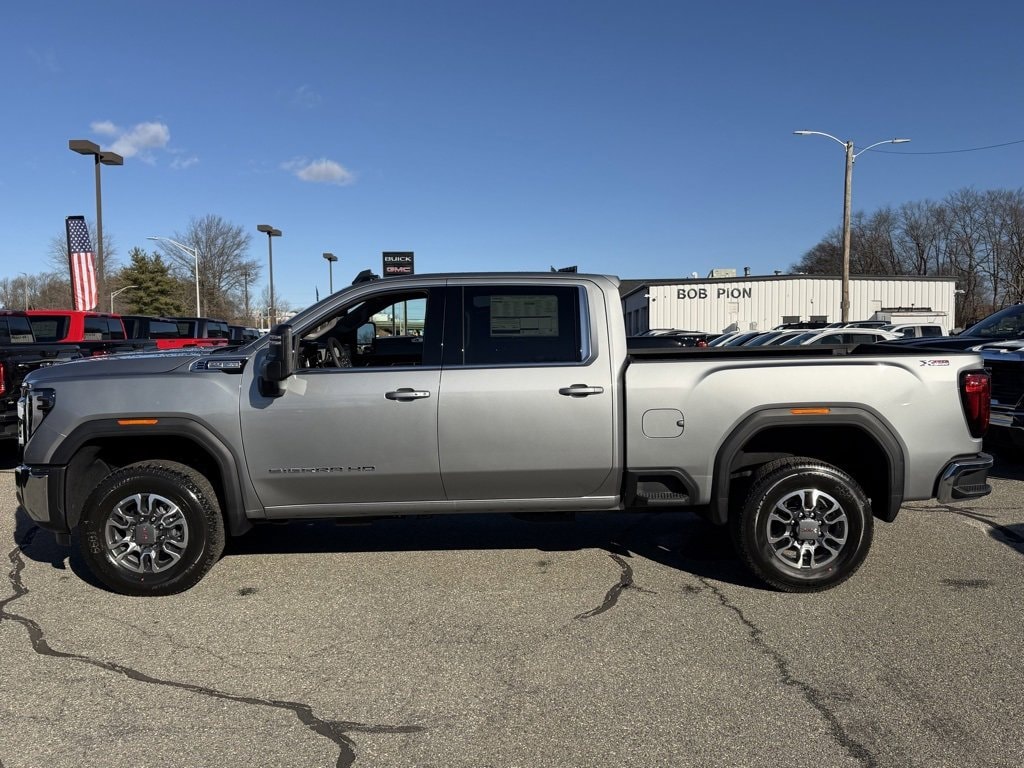 Sierra 2500HD SLE, 4D Crew Cab, 6.6L V8, 10-Speed Automatic, 4WD, Sterling Metallic, Jet Black Cloth, 10-Way Power Driver Seat Adjuster w/Lumbar, 220-Amp Alternator, A/C w/Dual-Zone Automatic Climate Control, Adaptive Cruise Control, Cloth Rear Seat w/Storage Package, Electric Rear-Window Defogger, Heated Driver & Front Outboard Passenger Seats, Heated Steering Wheel, Hill Descent Control, Hitch Guidance w/Hitch View, In-Vehicle Trailering System App, LED Cargo Area Lighting, LED Fog Lamps, LED Smoked Amber Roof Marker Lamps, Manual Tilt-Wheel/Telescoping Steering Column, Off-Road Suspension, Power Sliding Rear Window w/Defogger, Preferred Package, Remote Start Package, Remote Vehicle Starter System, SLE Convenience Package, SLE Heated Package, SLE Value Package, Snow Plow Prep/Camper Package, Spray-On Pickup Bedliner w/GMC Logo, Suspension Package, Unauthorized Entry Theft-Deterrent System, Universal Home Remote, X31 Off-Road Package.