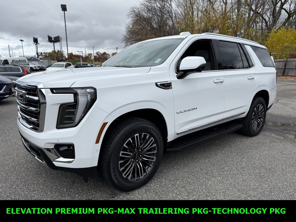 Yukon Elevation, 4D Sport Utility, EcoTec3 5.3L V8, 10-Speed Automatic with Overdrive, 4WD, Summit White, Dark Atmosphere/Gideon Leather, 15 Diagonal Multi-Color Head-Up Display, 4-Way Power Driver Lumbar Seat Adjuster, 4-Way Power Front Passenger Lumbar Seat Adjuster, Blind Zone Steering Assist w/Trailering, Dual-Pane Panoramic Power Sunroof, Elevation Premium Package, Extra Capacity Cooling System, Hill Descent Control, Hitch View, Inside Rearview Auto-Dimming Rear Camera Mirror, Integrated Trailer Brake Controller, Max Trailering Package, Navigation system: GMC Connected Navigation, Perforated Heated & Ventilated Dr & Frt Pass Seats, Rear Seat Media System, Smart Trailer Integration Indicator, Technology Package.