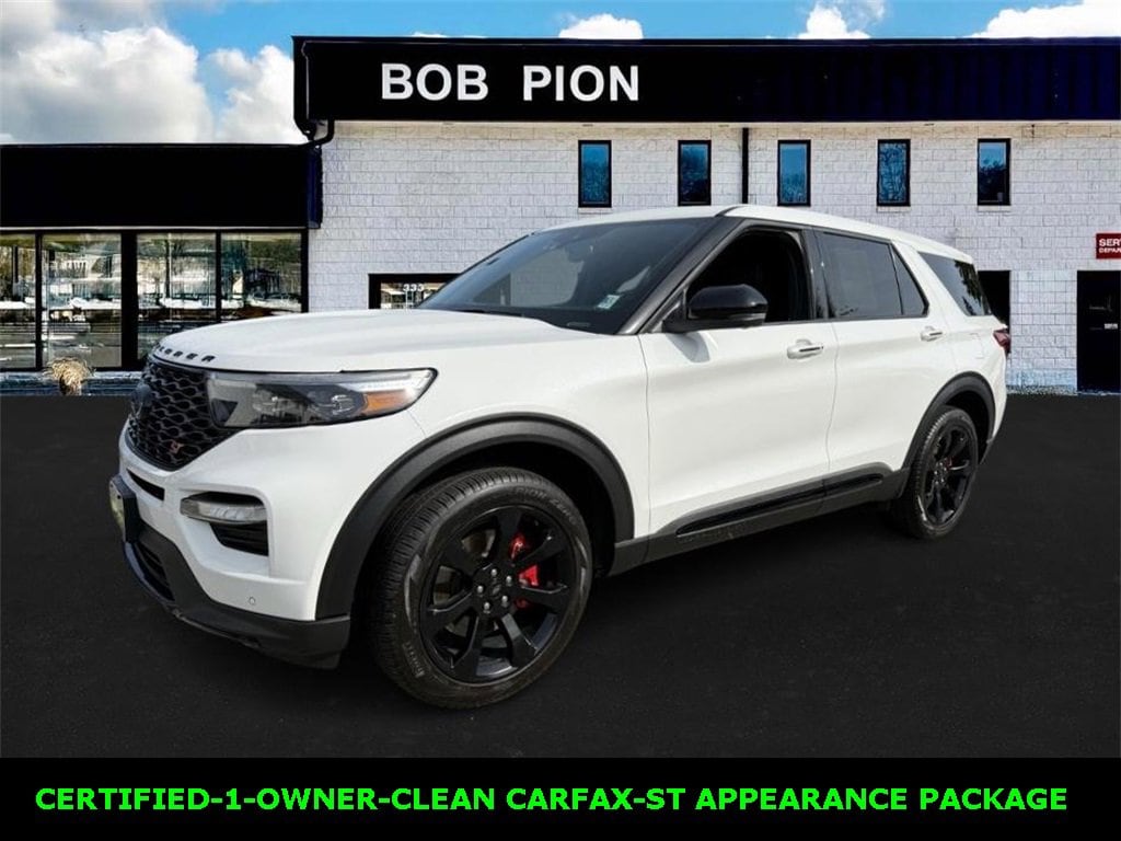 Explorer ST, 4D Sport Utility, 3.0L EcoBoost V6, 10-Speed Automatic, 4WD, Star White Metallic Tri-Coat, Ebony Leather, 10.1 LCD Capacitive Portrait Touchscreen, 2 Additional Speakers, Equipment Group 401A, Evasive Steering Assist, Ford Co-Pilot360 Assist+, Intelligent Adaptive Cruise Control, Leather Seating Surface Sprt Captain's Chairs, Race Red Front & Rear Floor Mats, Speed Sign Recognition, ST Appearance Package, ST High Package, ST Street Pack, Technology Package, Voice-Activated Touchscreen Navigation System.