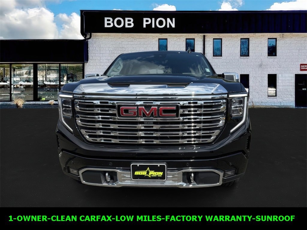 Sierra 1500 Denali, 4D Crew Cab, EcoTec3 6.2L V8, 10-Speed Automatic, 4WD, Onyx Black, Jet Black w/Perf Leather-Appointed Front Outboard Seat Trim, 120-Volt Bed Mounted Power Outlet, 120-Volt Interior Power Outlet, 170 Amp Alternator, 2 Charge/Data USB Ports Inside Center Console, 2 Type-C Charge-Only Rear USB Ports, 2 USB Ports, Auto-Locking Rear Differential, Auxiliary External Transmission Oil Cooler, Bed View Camera, Chrome Header w/Signature Denali Chrome Grille, Chrome Recovery Hooks, Chrome Wheel To Wheel Assist Steps, Color-Keyed Carpeting Floor Covering, Deep-Tinted Glass, Denali Reserve Package, Electric Rear-Window Defogger, Floor-Mounted Center Console, Front Rain-Sensing Wipers, GMC Connected Access Capable, GMC MultiPro Power Steps, HD Surround Vision, Heated 2nd Row Outboard Seats, Heated Driver & Front Outboard Passenger Seating, Heavy-Duty Air Filter, Hill Descent Control, Hitch Guidance, Hitch View, In-Vehicle Trailering System App, Integrated Trailer Brake Controller, Keyless Open & Start, LED Cargo Area Lighting, Multicolor 15 Diagonal Head-Up Display, Navigation System, OnStar & GMC Connected Services Capable, Perimeter Lighting, Power Door Locks, Power Front Passenger Windows w/Express Up/Down, Power Front Windows w/Driver Express Up/Down, Power Rake & Telescoping Steering Column, Power Rear Windows w/Express Down, Power Sliding Rear Window w/Rear Defogger, Power Sunroof, Preferred Equipment Group 5SA, Premium Bose 7-Speaker Sound System, Push Button Start, Rear Camera Mirror, Rear Cross Traffic Braking, Rear Pedestrian Detection, Rear Wheelhouse Liners, Remote Vehicle Starter System, SiriusXM w/360L, Spray-On Pickup Bedliner w/Denali Logo, Steering Wheel Audio Controls, Technology Package, Theft Deterrent System (Unauthorized Entry), Trailer Camera Provisions, Trailer Side Blind Zone Alert, Trailering Package, Ultrasonic Front & Rear Park Assist, Universal Home Remote, Ventilated Driver & Front Passenger Seats, Wheel Locks (Set of 4) (LPO), Wheels: 22 x 9 Painted Aluminum, Wi-Fi Hotspot Capable, Wireless Charging.